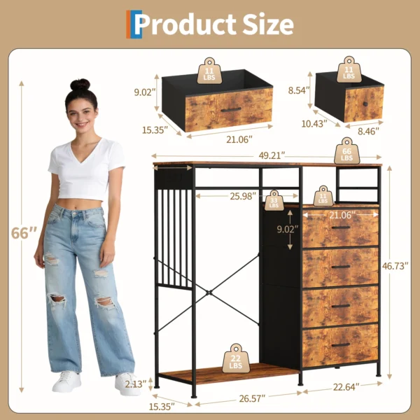 High-concerned chemical: None Style: Minimalist Modern Frame Material: Metal Installation Method: Assembly Appearance: Modern Style General Use: Home Furniture Specific Use: Dresser Material: Wooden Origin: Mainland China Number Of Drawers: 4 With Makeup Stool: No With Mirror: No Type: Bedroom Furniture Brand Name: TWISTER.CK This multi-functionality dresser with hanging rack (2-in-1 design: wide dresser + hanging rack) measures 49.2"W x 15.8"D x 47.2"H and […]
