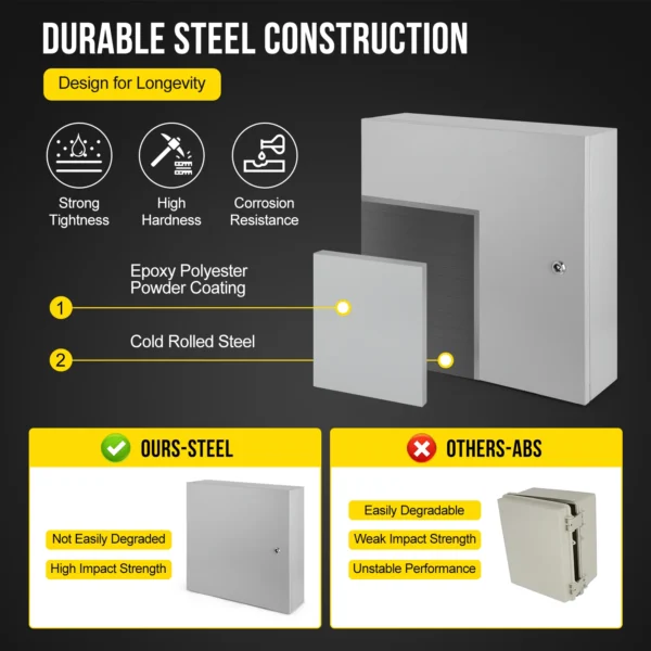 • Electrical Box NEMA 4X Steel Waterproof & Dustproof Outdoor/Indoor Electrical Project Box Junction Boxes w/Lock & Mounting Plate New
