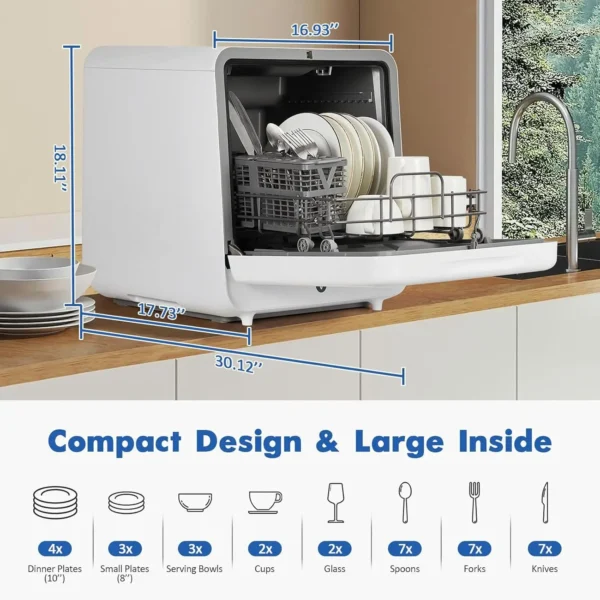 • Countertop Dishwasher, Mini Dishwasher with Faucet&Manual Water Tank(5L) Modes Water Inlet, 6 Programs Ideal for RV & Apartments New