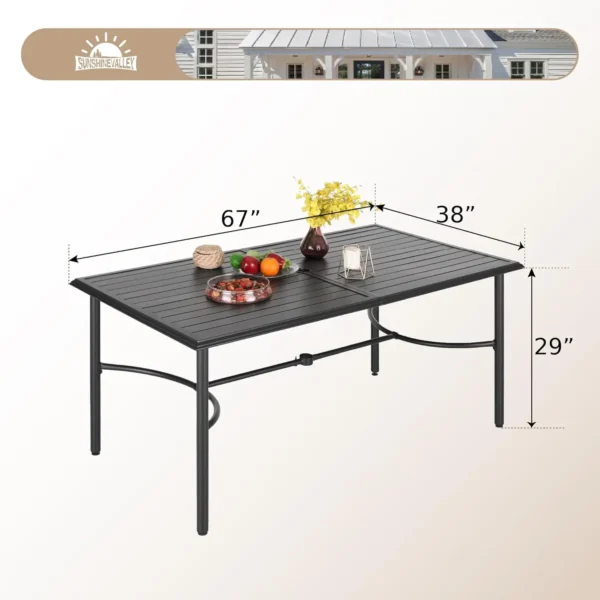 $412.68High-concerned chemical: None Frame Material: None Origin: US(Origin) Maximum Weight Recommendation: 165 Pounds Frame Material: Metal Rectangular Dining Table for 6:With dimensions of 67” x 38” x 29”, this patio dining table can accommodate six seats, roomy enough for dinners with families and friends. It is moderately sized, suitable for various indoor and outdoor usage […]