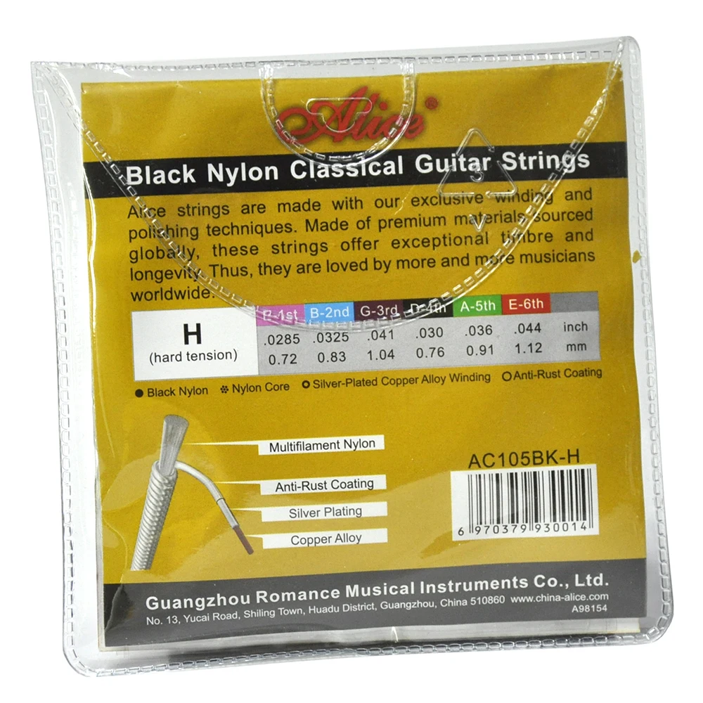 10 Sets Alice AC105BK-H Black Nylon Classical Guitar Strings Hard Tension