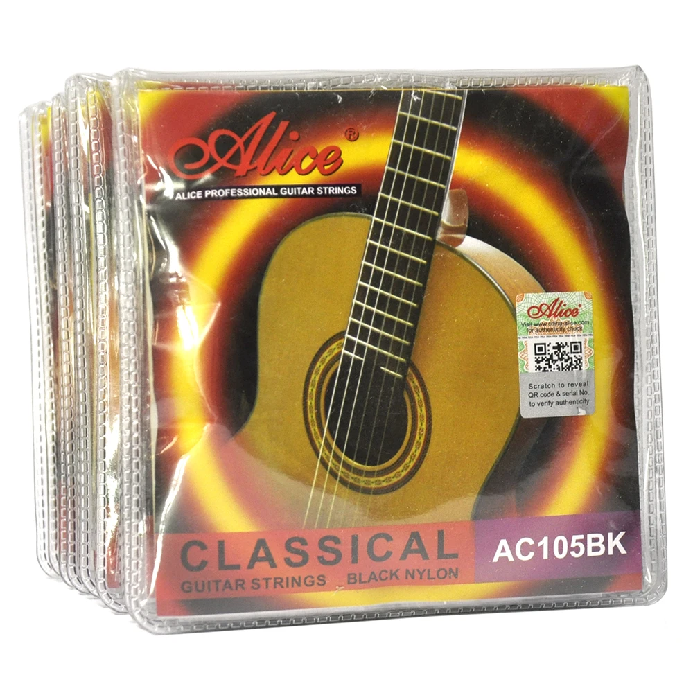 10 Sets Alice AC105BK-H Black Nylon Classical Guitar Strings Nylon Silver Plated Copper Alloy