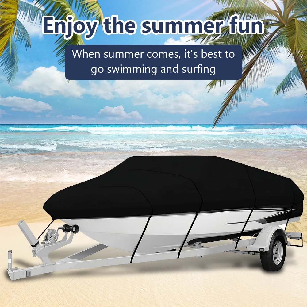 14-16FT Boat Cover 210D Oxford Cloth Fishing Skiing Boat Protector Waterproof Sailing Boats Cover for Yachts Motors Rowing Boats