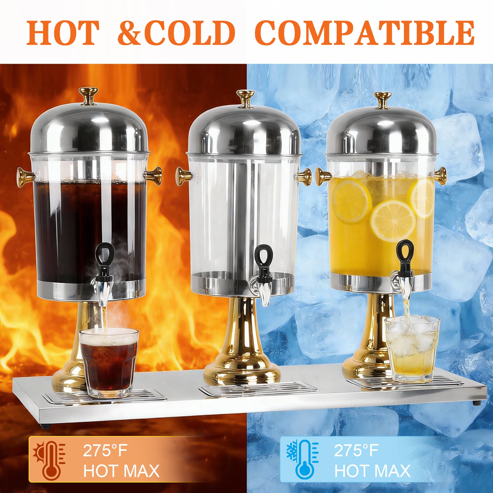 2.User-Friendly Features: Our all-in-one drink dispenser includes a removable drip tray and a leak-proof stainless steel spigot, minimizing spills and mess whether at home or in busy commercial environments. Great for storing a variety of drinks.