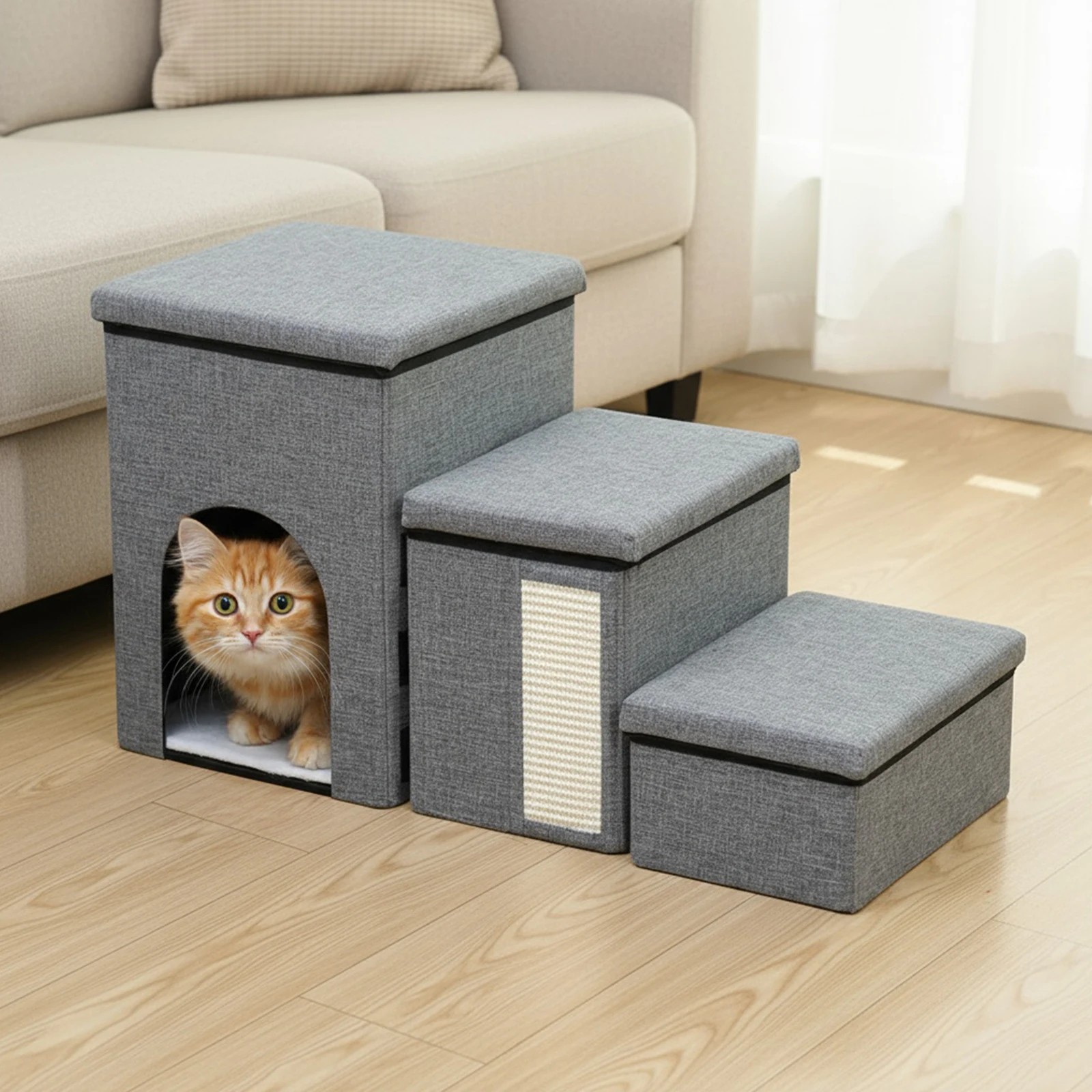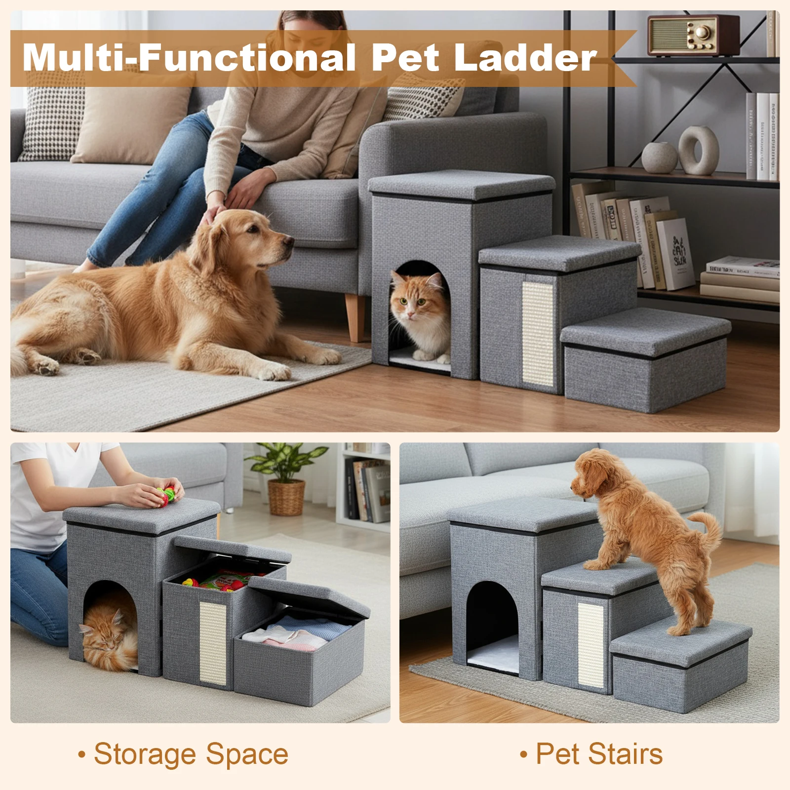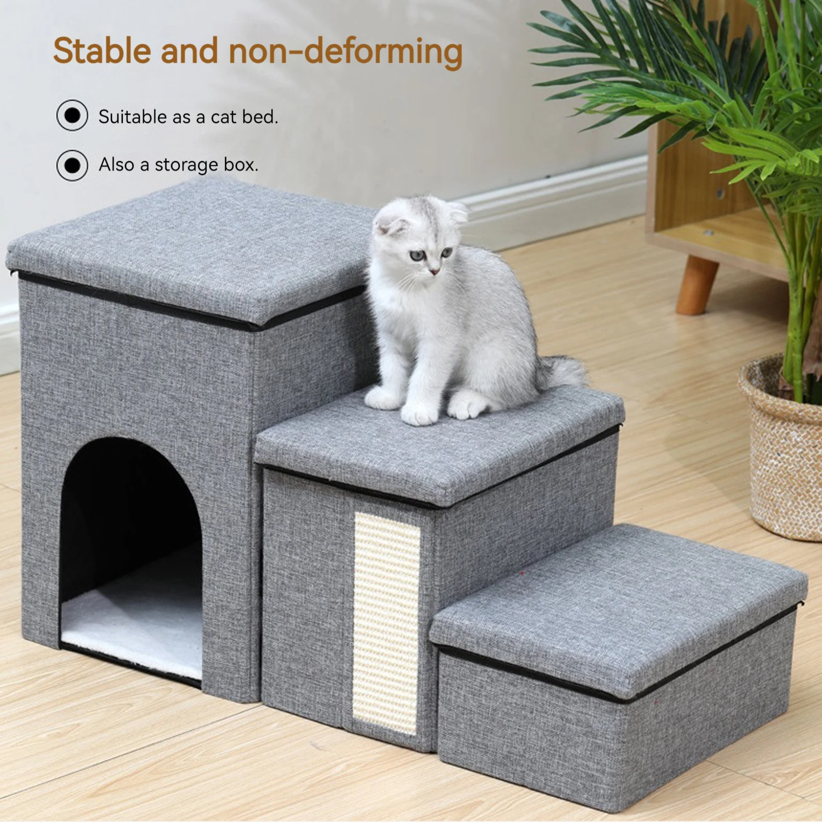 3 Levels Step Pet Climbing Ladder Anti Slip Multifunctional Cat Bed Wear Resist Pet Stairway Storage Box for Cats & Dogs