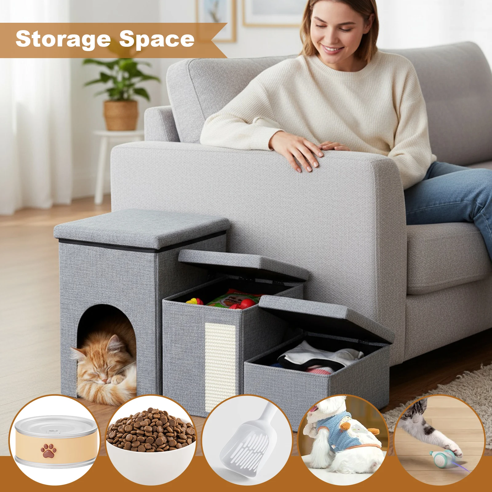 4.Unique Dual-Sided Cushion Design: Each pet stairway storage box features a reversible cushion for seasonal comfort, non-slip bottom for stability, and wear-resistant fabric that enhances durability for both pets and owners.