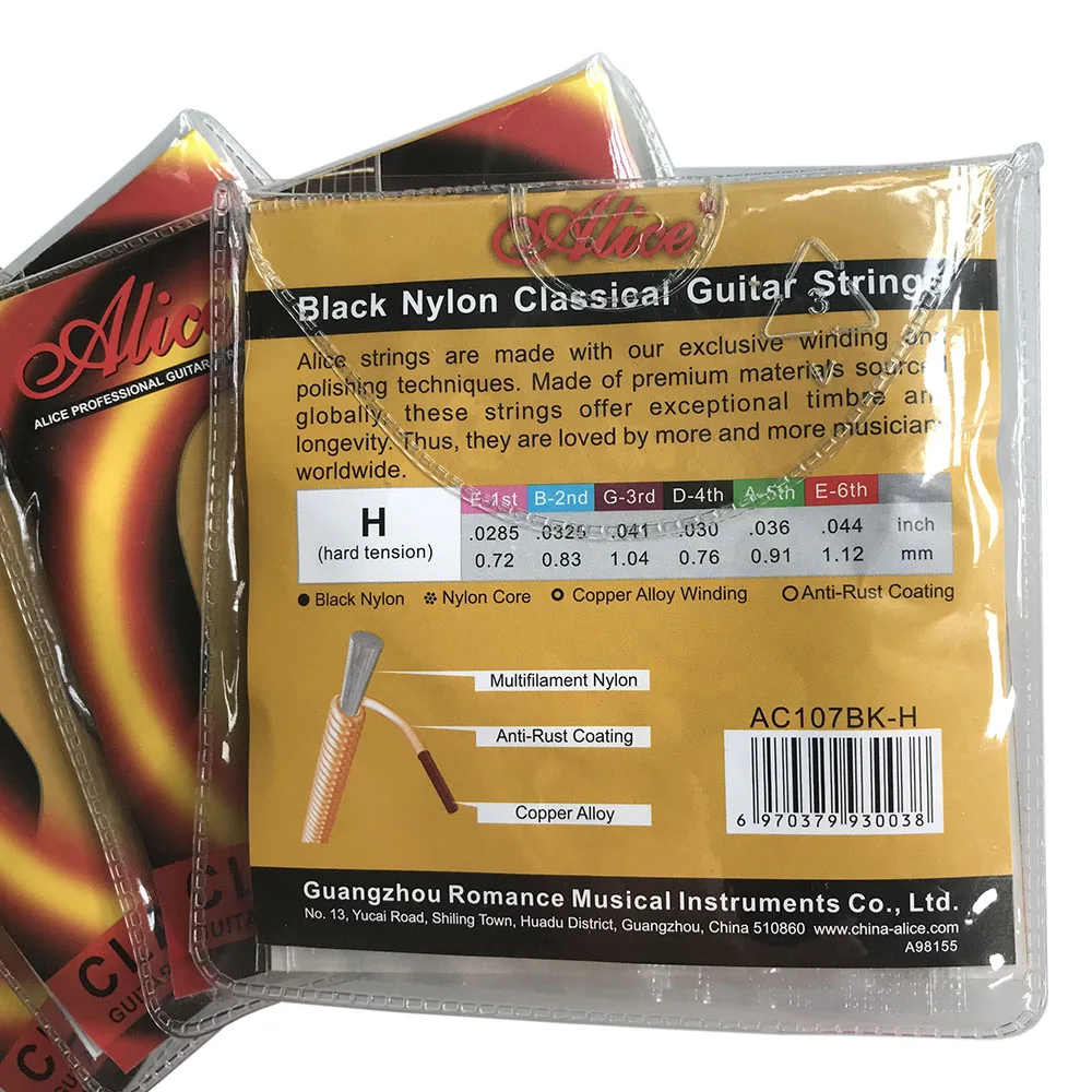 5 Sets Alice AC107BK-H Classical Guitar Strings Hard Tension Black Nylon