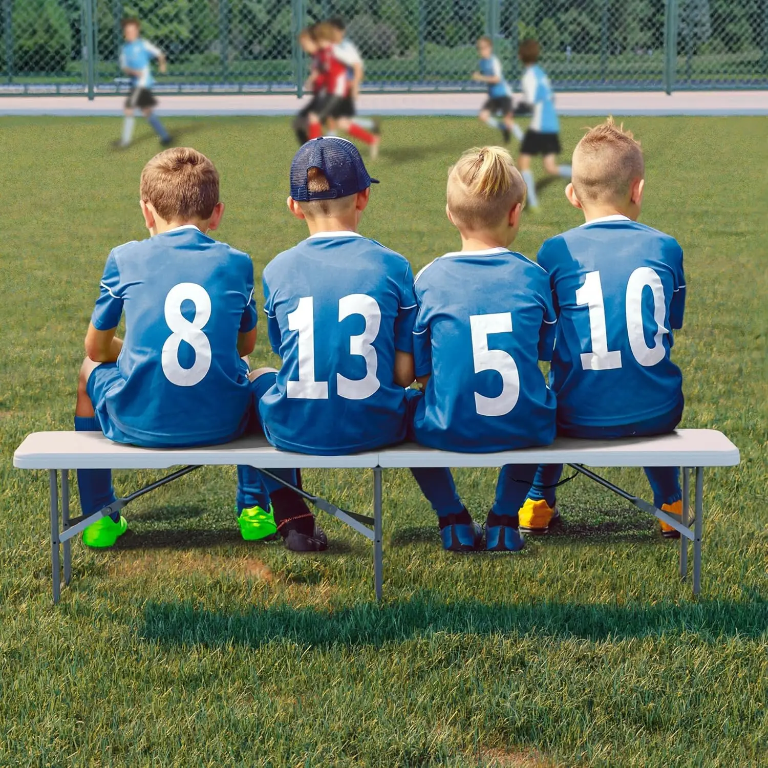 【Stable Construction】–This foldable bench seating are made of coated heavy-duty metal frame with protective coated for durability. Features anti-slip feet and a locking mechanism to prevent wobbling or accidental collapse. Ideal as a sports bench, team bench, or lifetime bench.