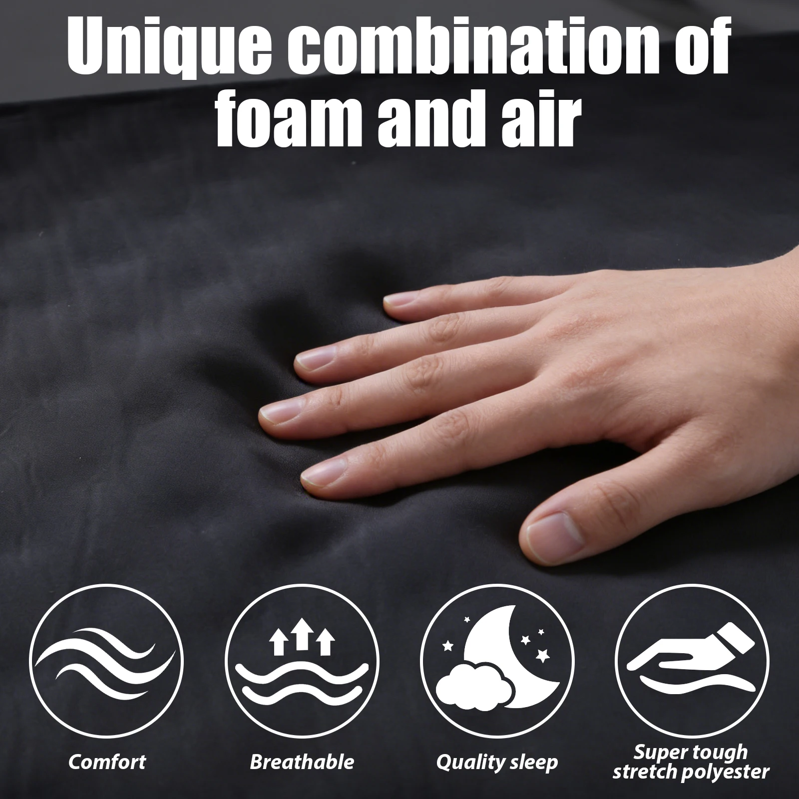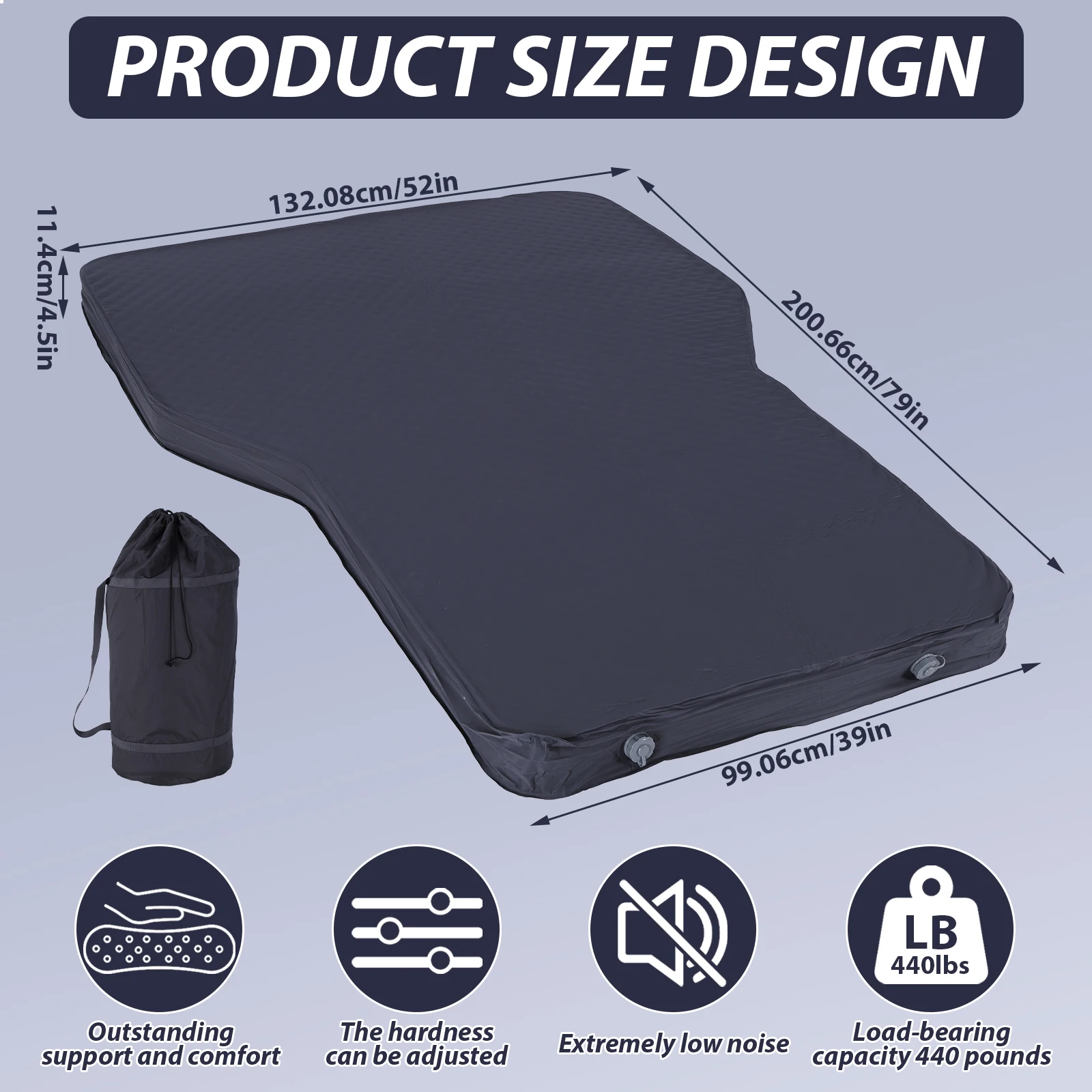 4.Silent Stability All Night: Designed with a unique air and foam structure, the self-inflating car air mattress ensures a quiet, stable sleeping surface. Move freely without any squeaking or disturbing noises, so both you and your companion sleep soundly.