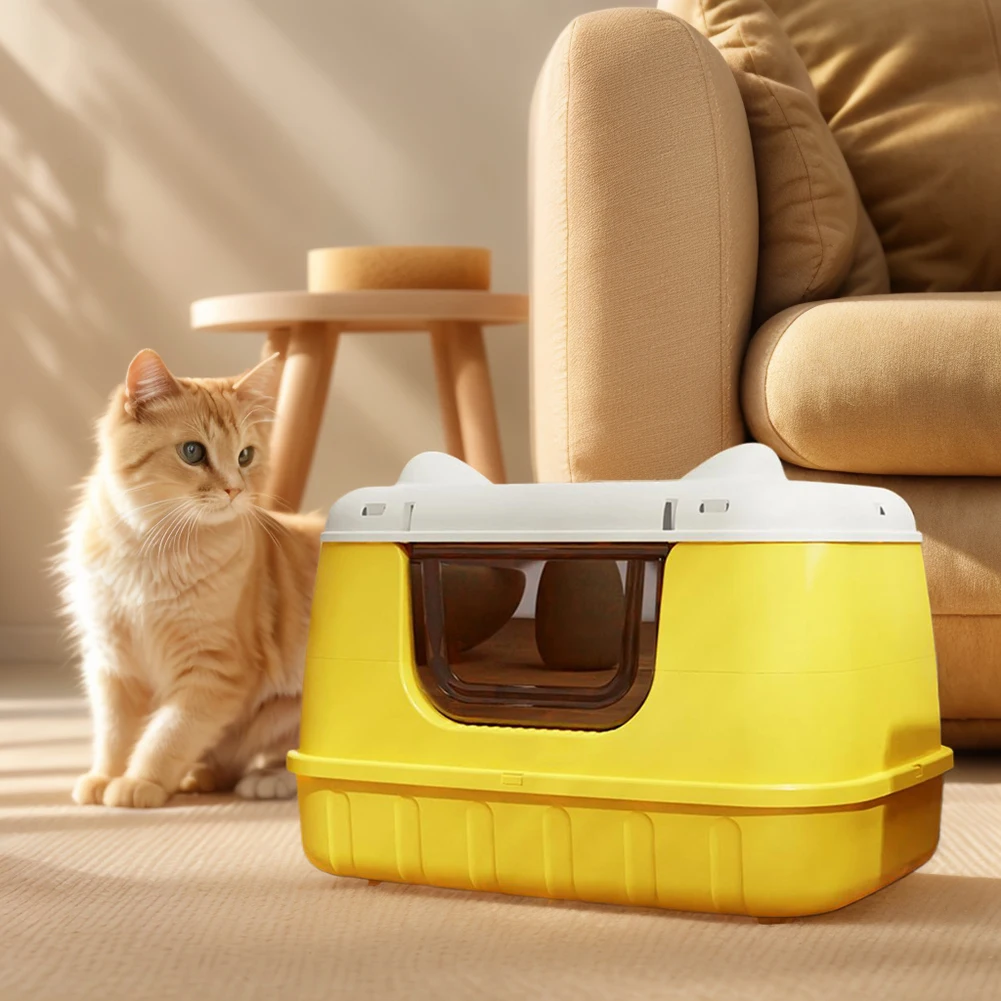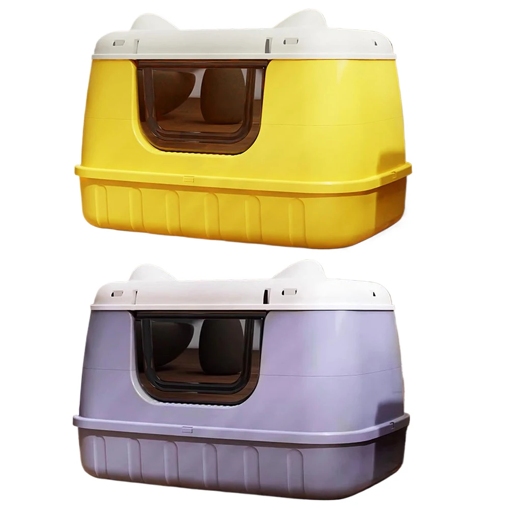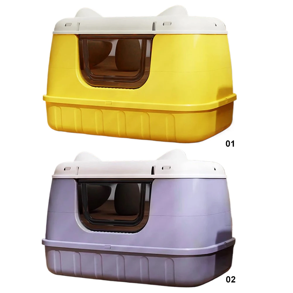 Large Cat Litter Box Enclosed Cat Bedpans Anti Splashing Cat Litter Pan with Handle Kitty Litter Tray for Larger Cat Breeds Or Multiple Cat Households