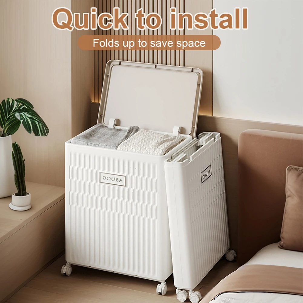 Rolling Laundry Hamper with Wheels and Lid Collapsible Laundry Basket Plastic Storage Container for Clothes Towels & Home Organization