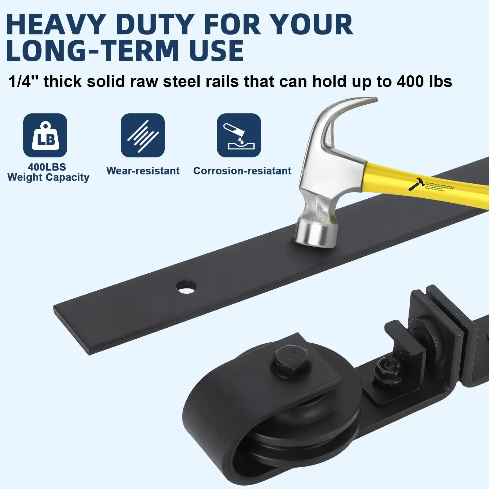 7. Easy DIY Installation: Detailed step-by-step instructions with pictures help you mount the hardware effortlessly—no professional installer required. Ensure at least 6'' clearance above the door frame for proper setup.