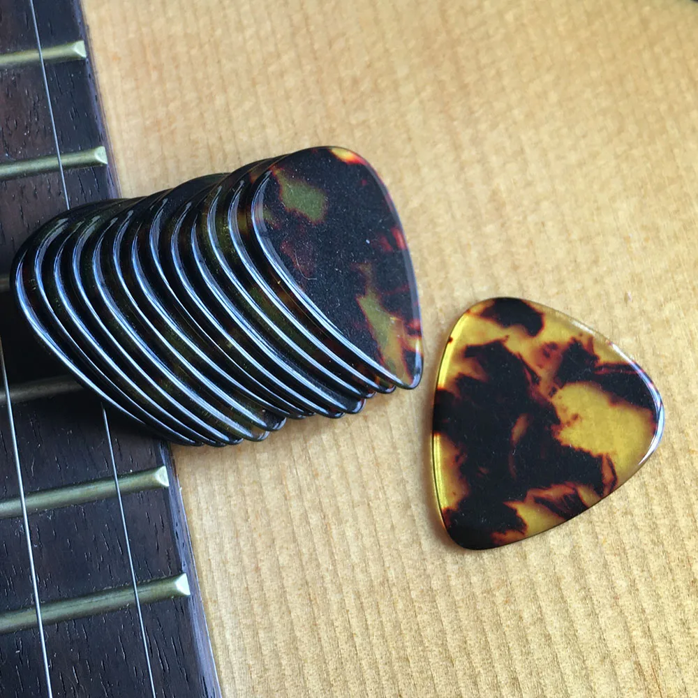 Lots of 100pcs Yellow Tortoise Ultra Heavy 1.5mm Celluloid Guitar Picks Standard Plectra