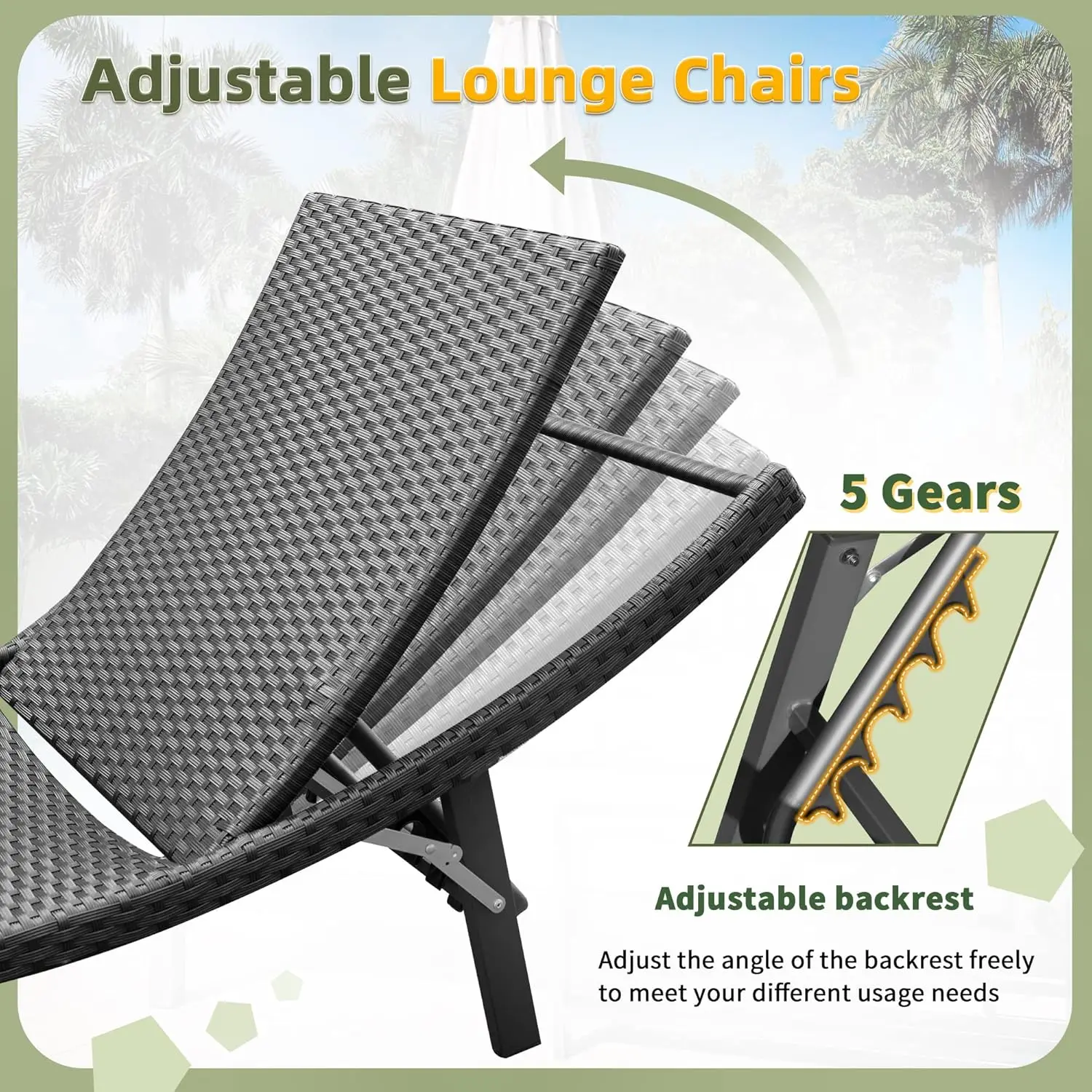 Lounge Chairs for Outside 3 Pieces Patio Adjustable Chaise Lounge Outdoor Wicker Lounge Chairs Set of 2 with Table, Customized