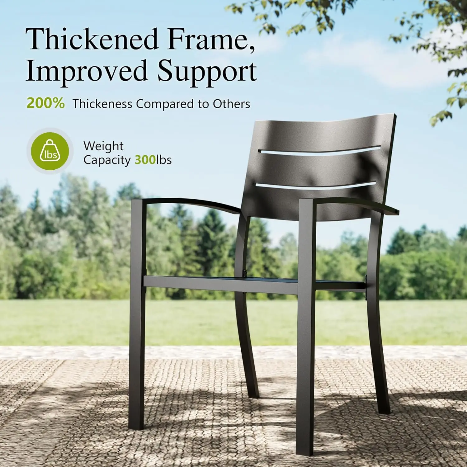 Stackable Dining Chairs: 4 metal patio dining chairs can be stacked when not in use, without worrying about taking up storage space. Spacious and comfortable seating for 4 or more person family dinner and party