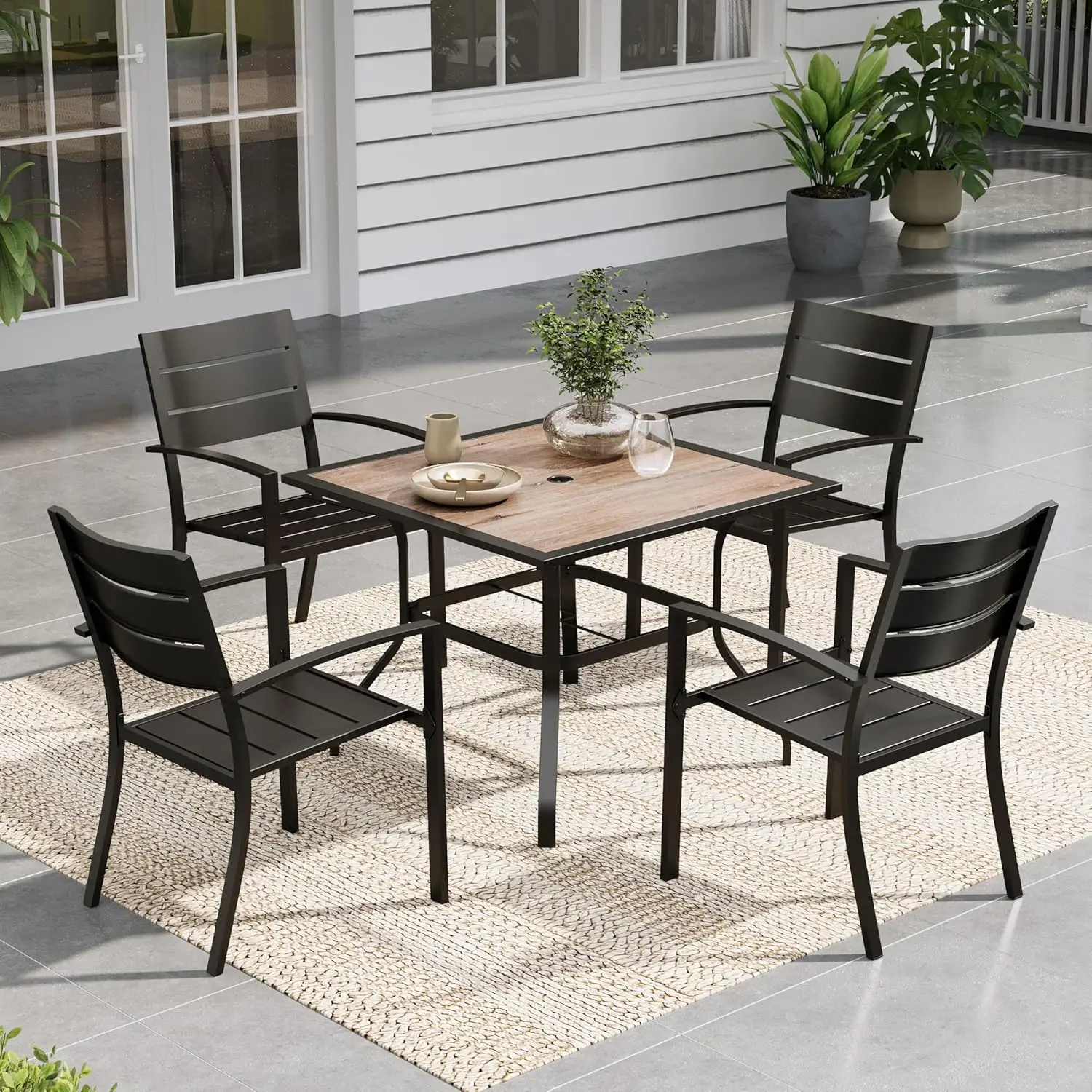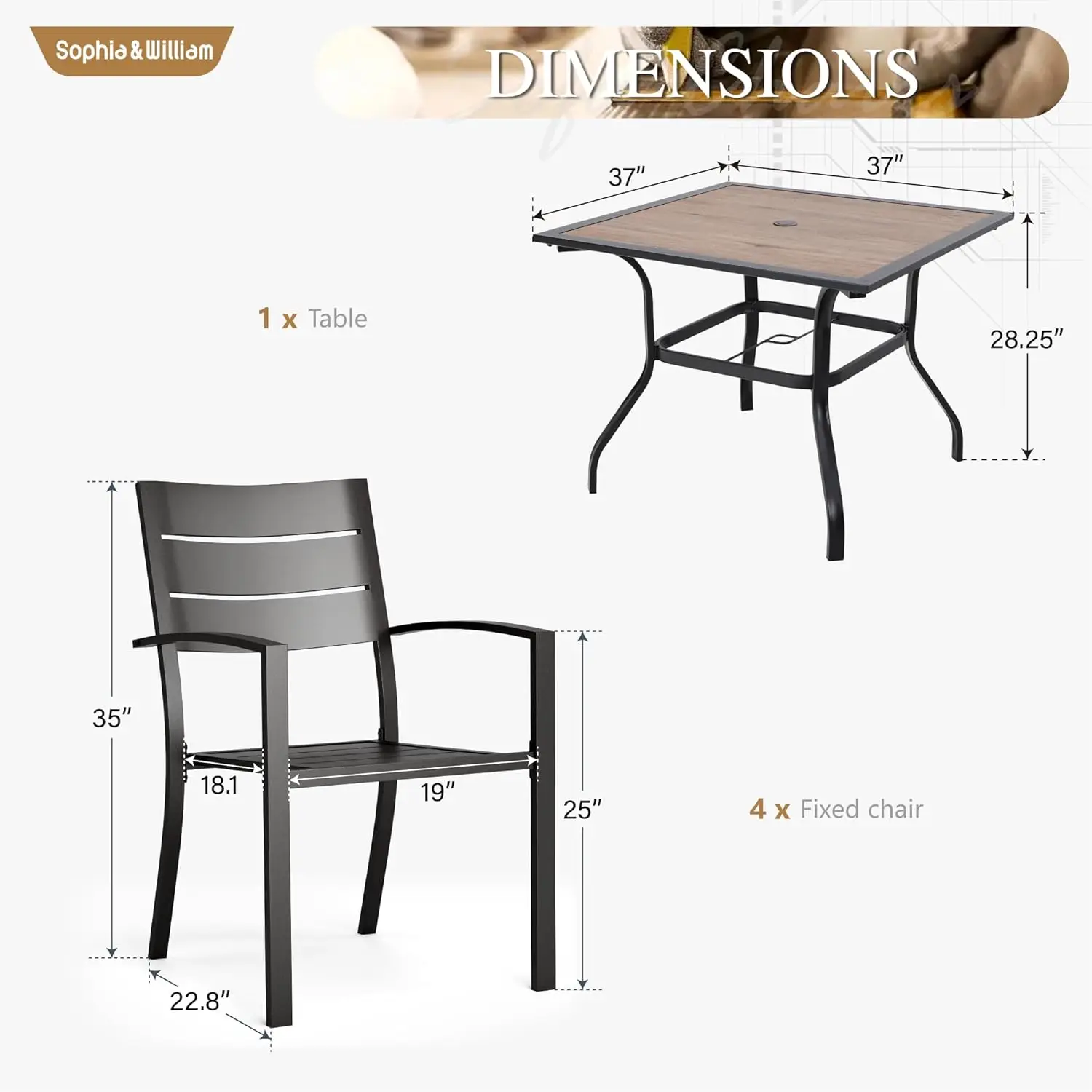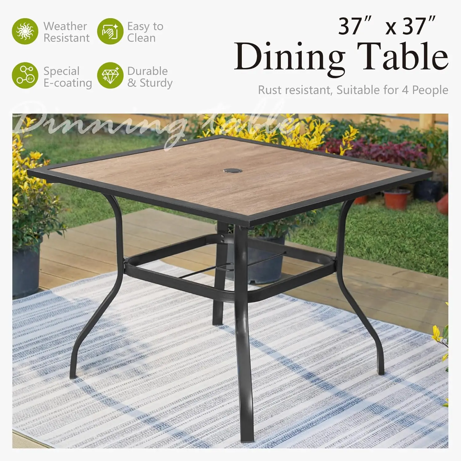 Square Dining Table: 37″ table provides ample space for food and drinks. Neat slat tabletop and curved legs, black frame. 1.57″ umbrella hole