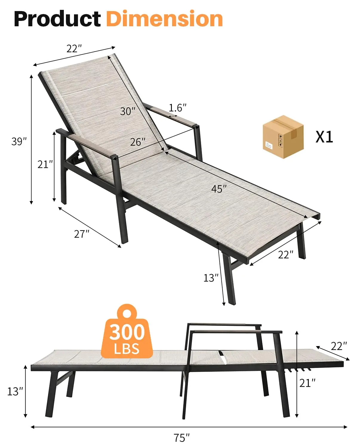 HIGH-PRESSURE WASHABLE & FAST DRYING: Designed for real outdoor use, the upgraded textilene surface on both lounge chairs supports high-pressure washing, allowing dirt, sunscreen, sweat, or light spills to be removed in just seconds. The fast-drying, fade-resistant fabric maintains its color and texture over time, making cleaning simple and efficient while keeping both loungers durable and visually appealing.