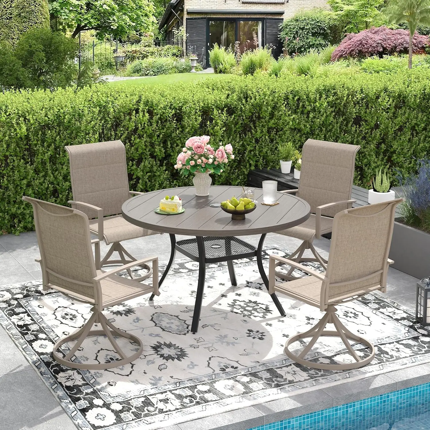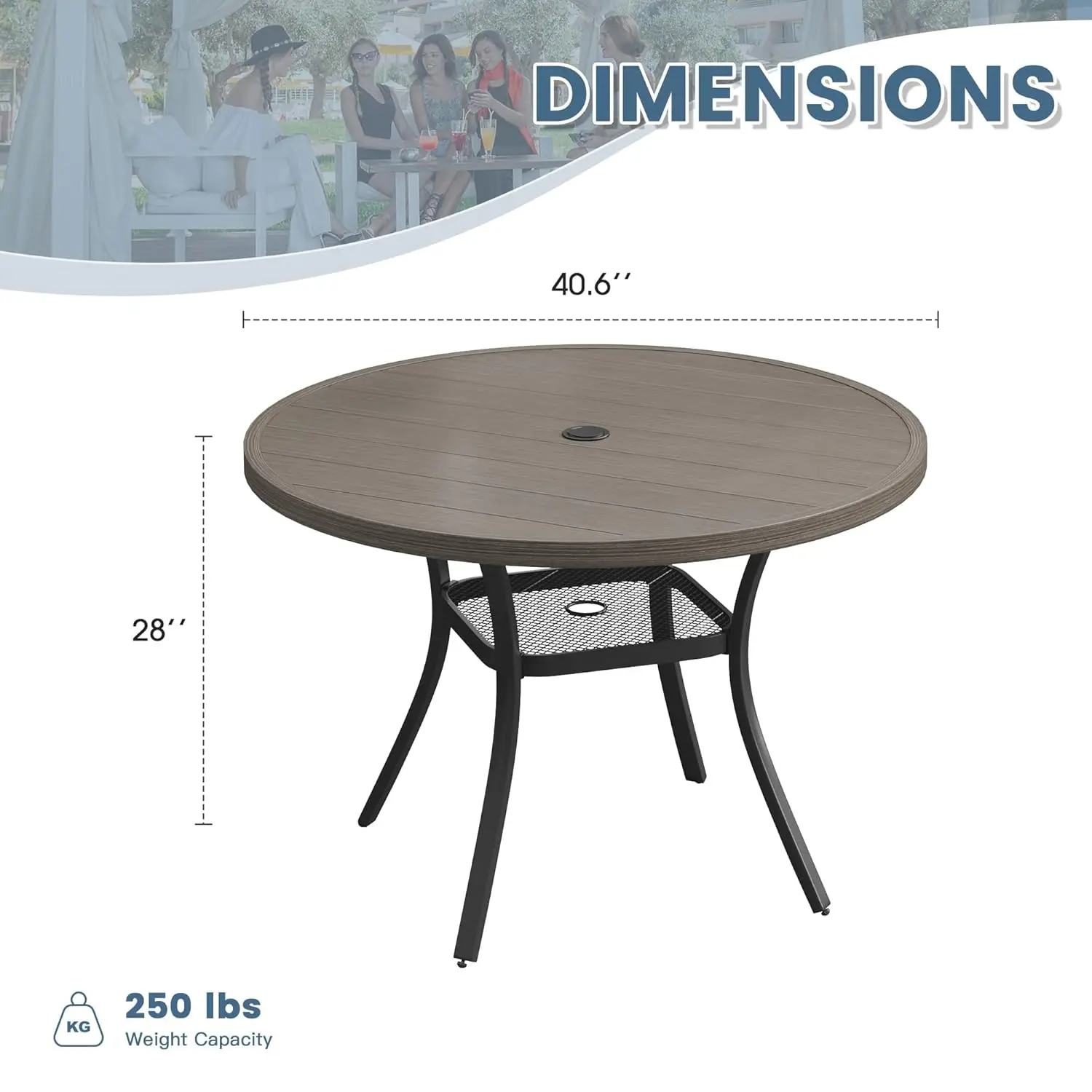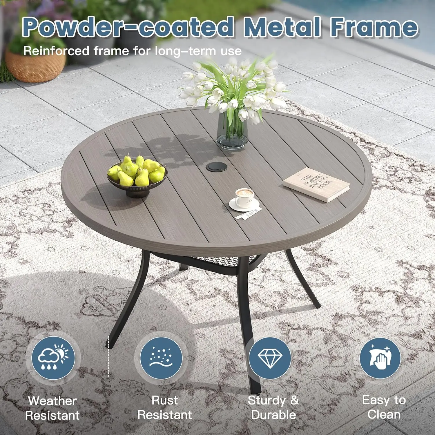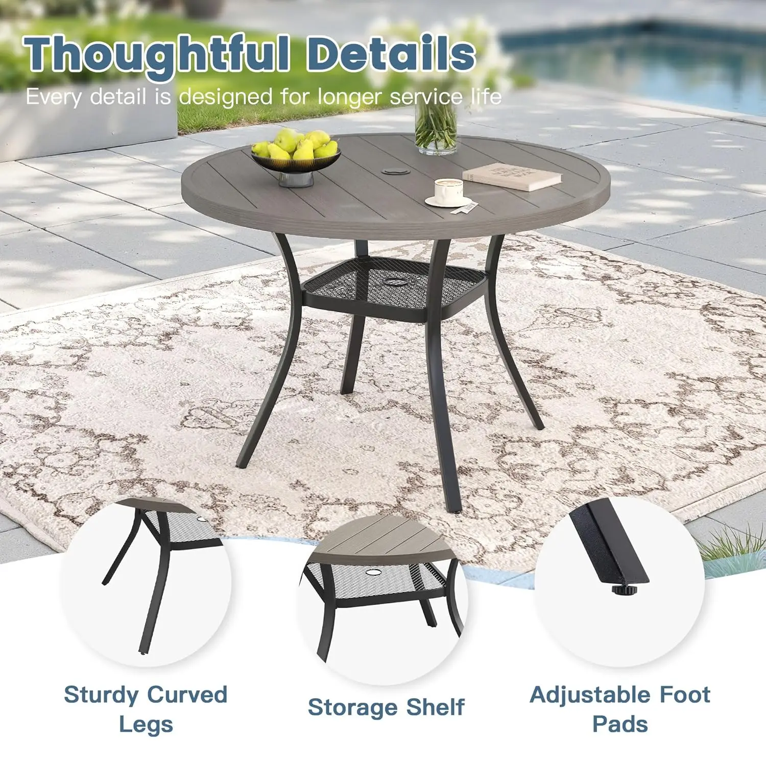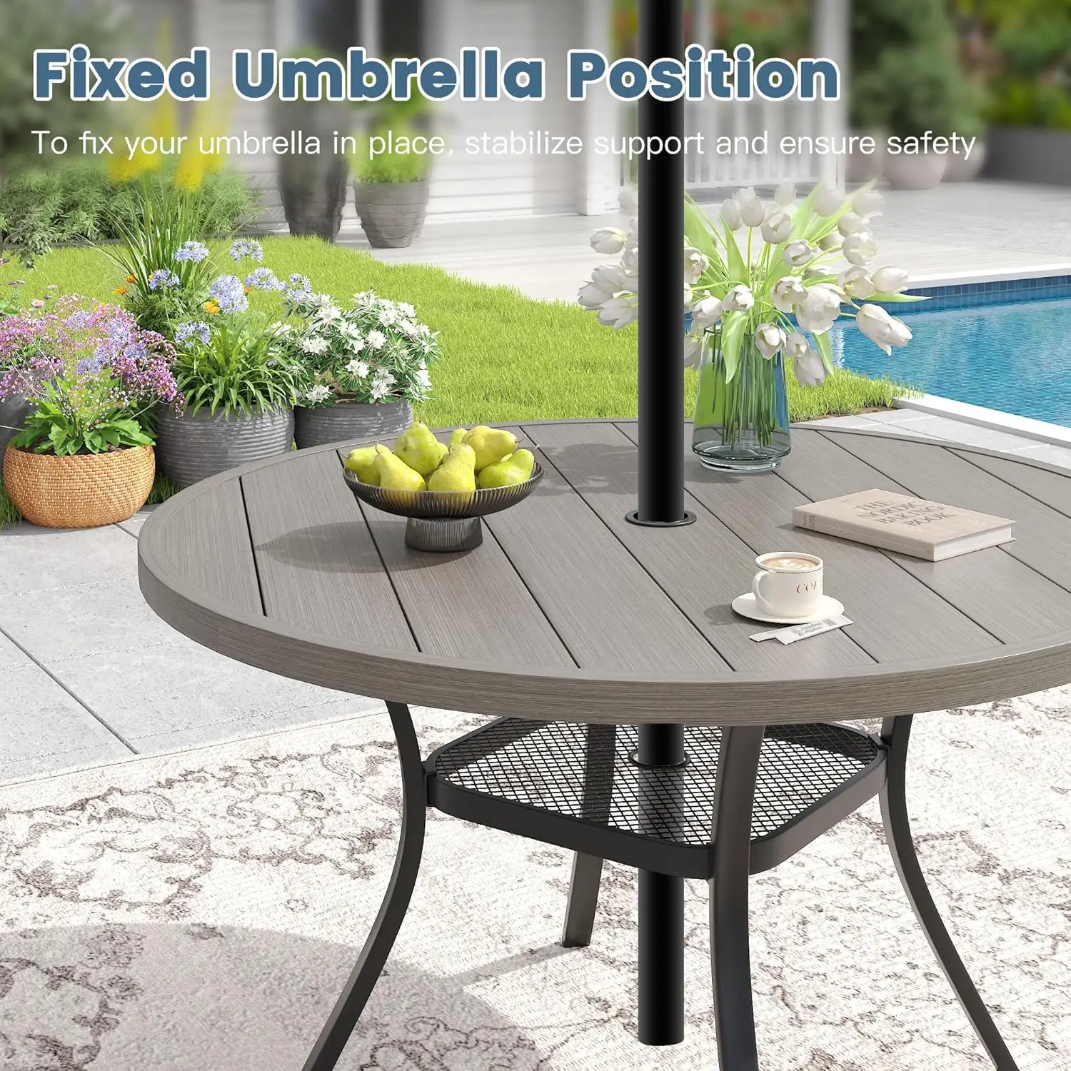 Outdoor Dining Table for 4, Round Patio Table with Umbrella Hole for Garden, Backyard and Porch (Grey), Customized