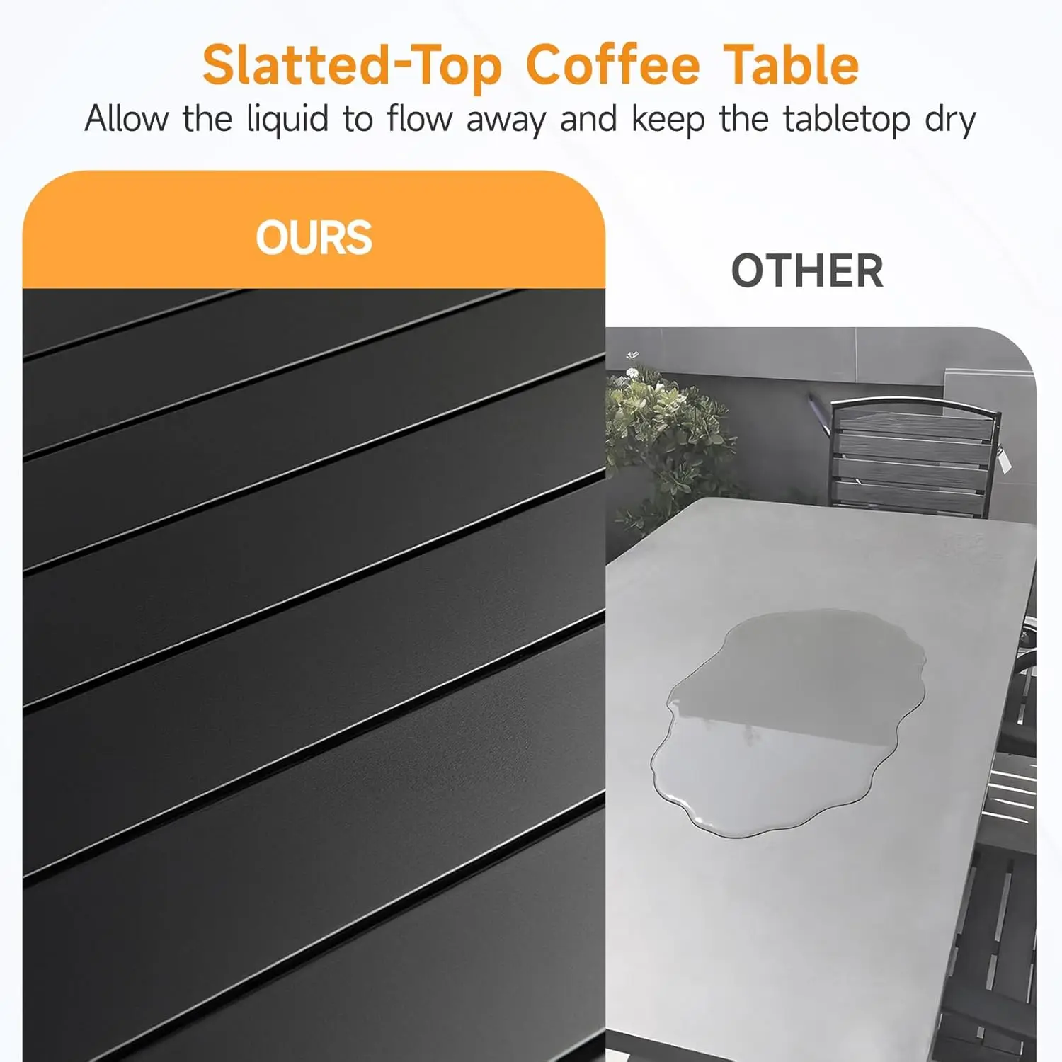 Weatherproof Coffee Table: This coffee table features an all-steel frame with a durable lacquer finish, not easy to rust and fading. It perfectly addresses the wear and tear caused by exposure to rain and sunlight