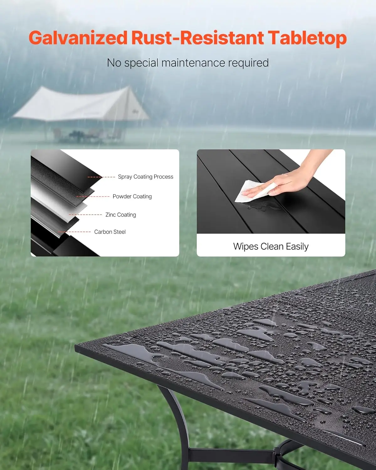 Rust and Weather Resistant: Crafted with galvanized carbon steel, the patio table’s tabletop is built for longevity and stands up to harsh outdoor conditions. Simply wipe away grease or spills with a damp cloth—no special maintenance required