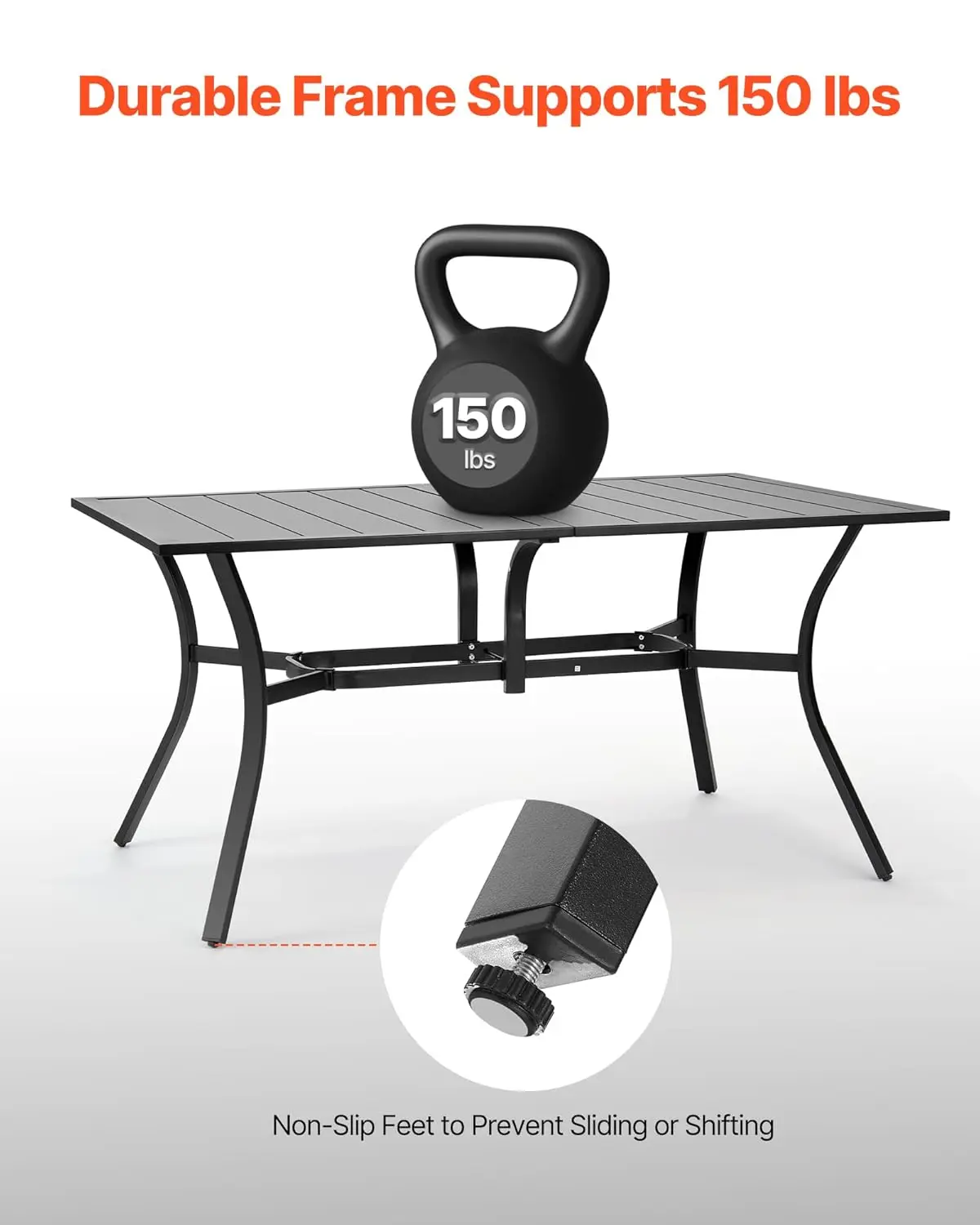 Outdoor Patio Dining Table, 59 inch Long Rectangular Metal Steel Slat Backyard Bistro Tables for 4-6, with 1.5 in, Customized