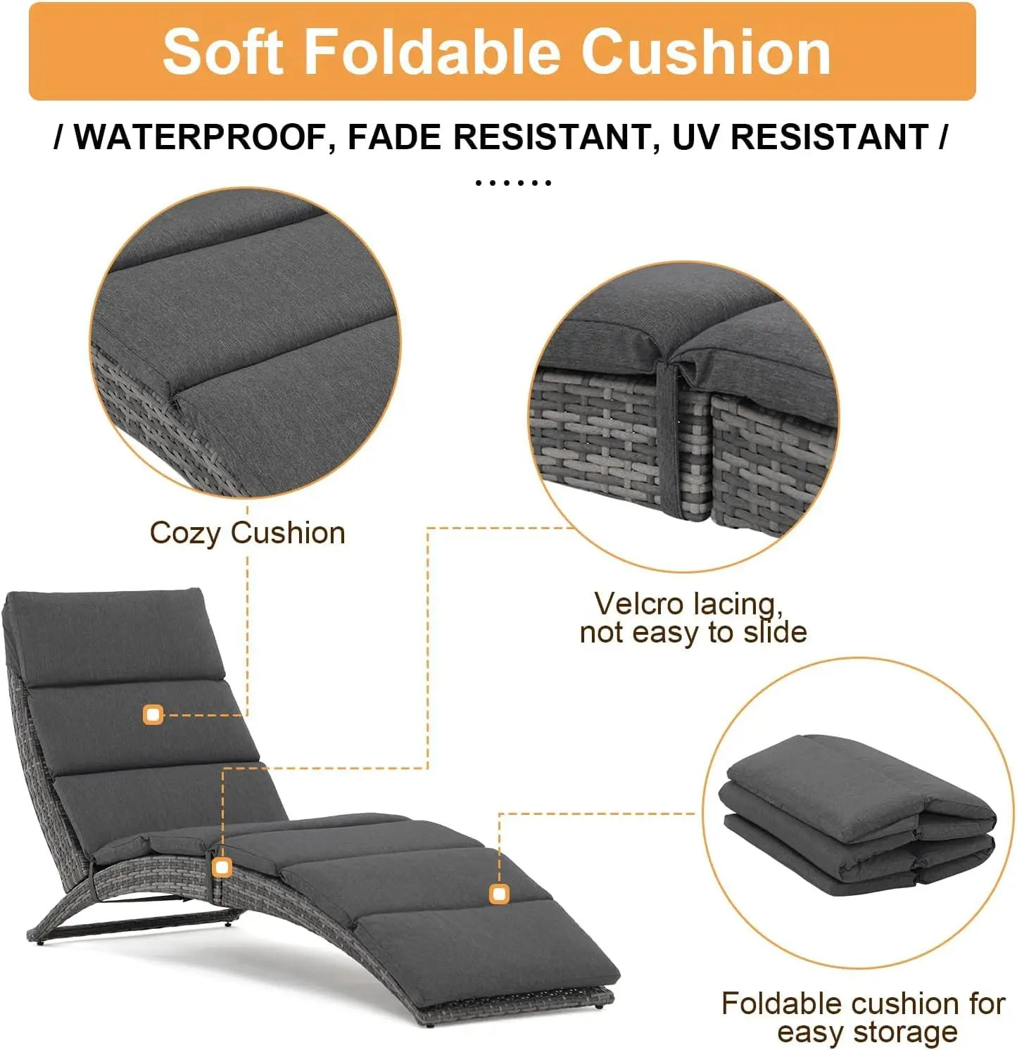 【Space Saving & Portable】This wicker outdoor lounge chairs features a foldable structure, maximizing storage efficiency and making it easy to move and carry. The patio chaise lounge chair outdoor is ideal for anyone with limited space who wants functional yet stylish outdoor furniture.