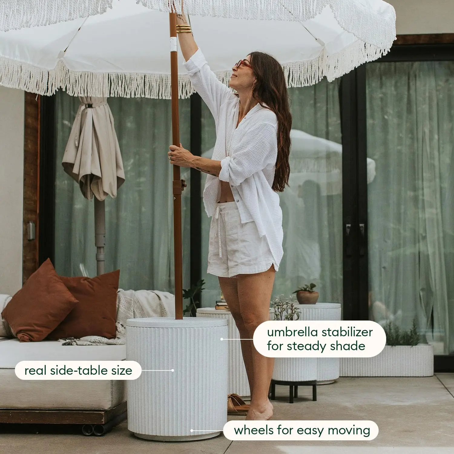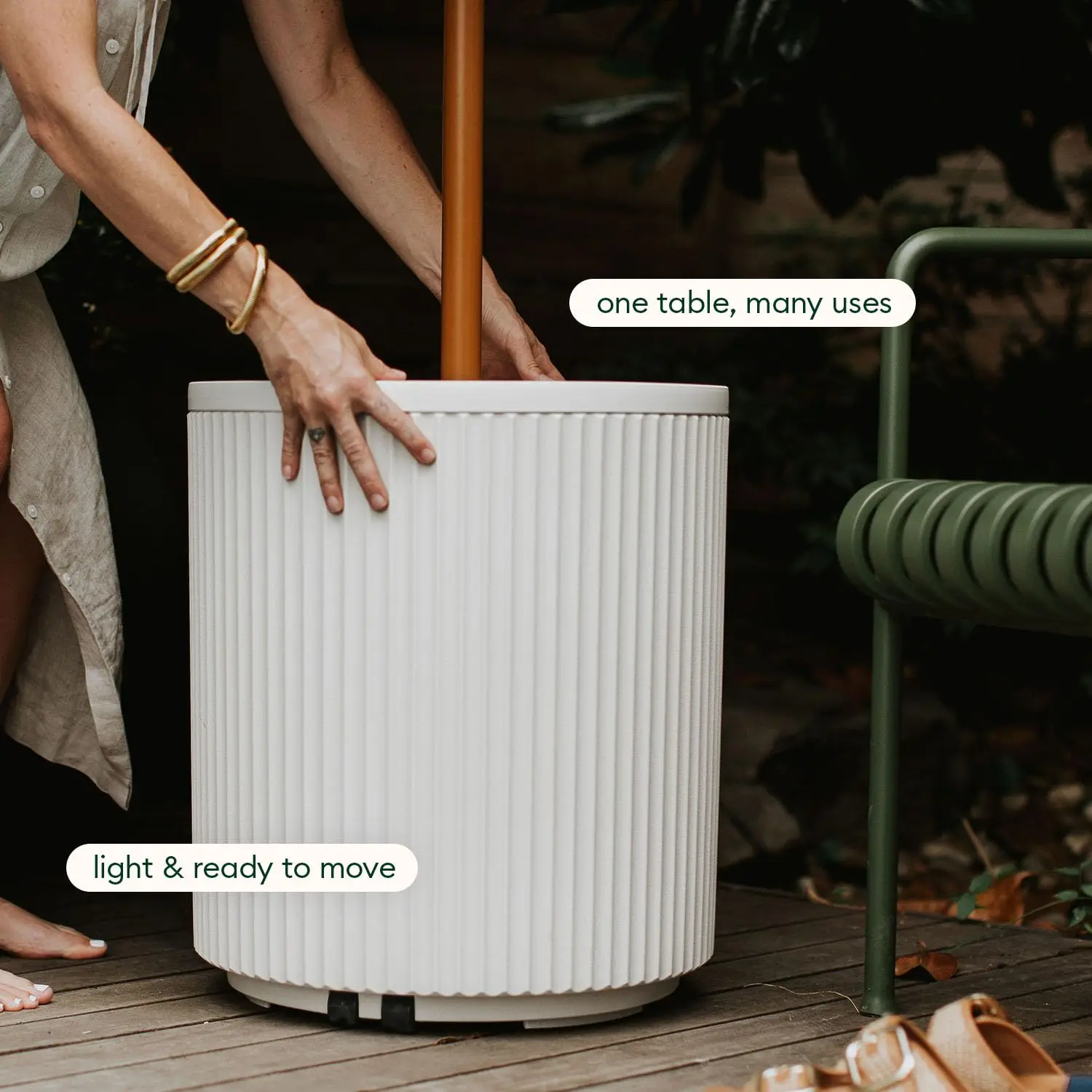 STURDY & FUNCTIONAL: To enhance stability, this outdoor umbrella table comes with a bladder that holds up to 11.5 gallons of water. When it’s empty, it can be used as storage for patio essentials