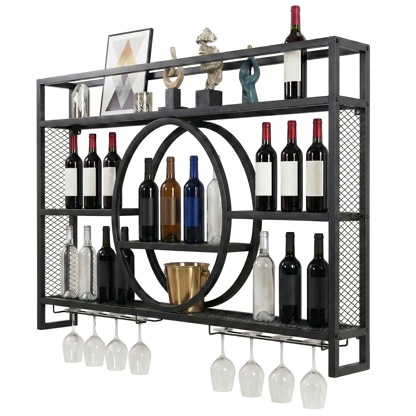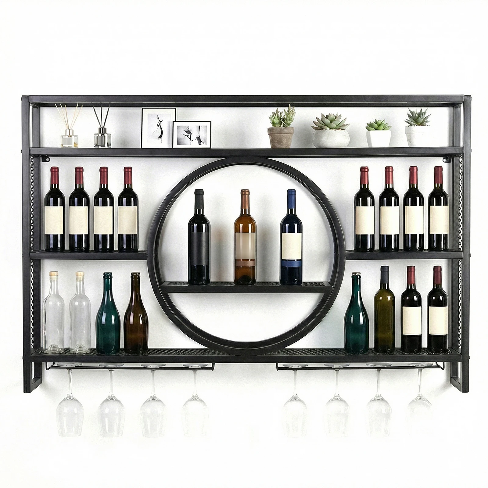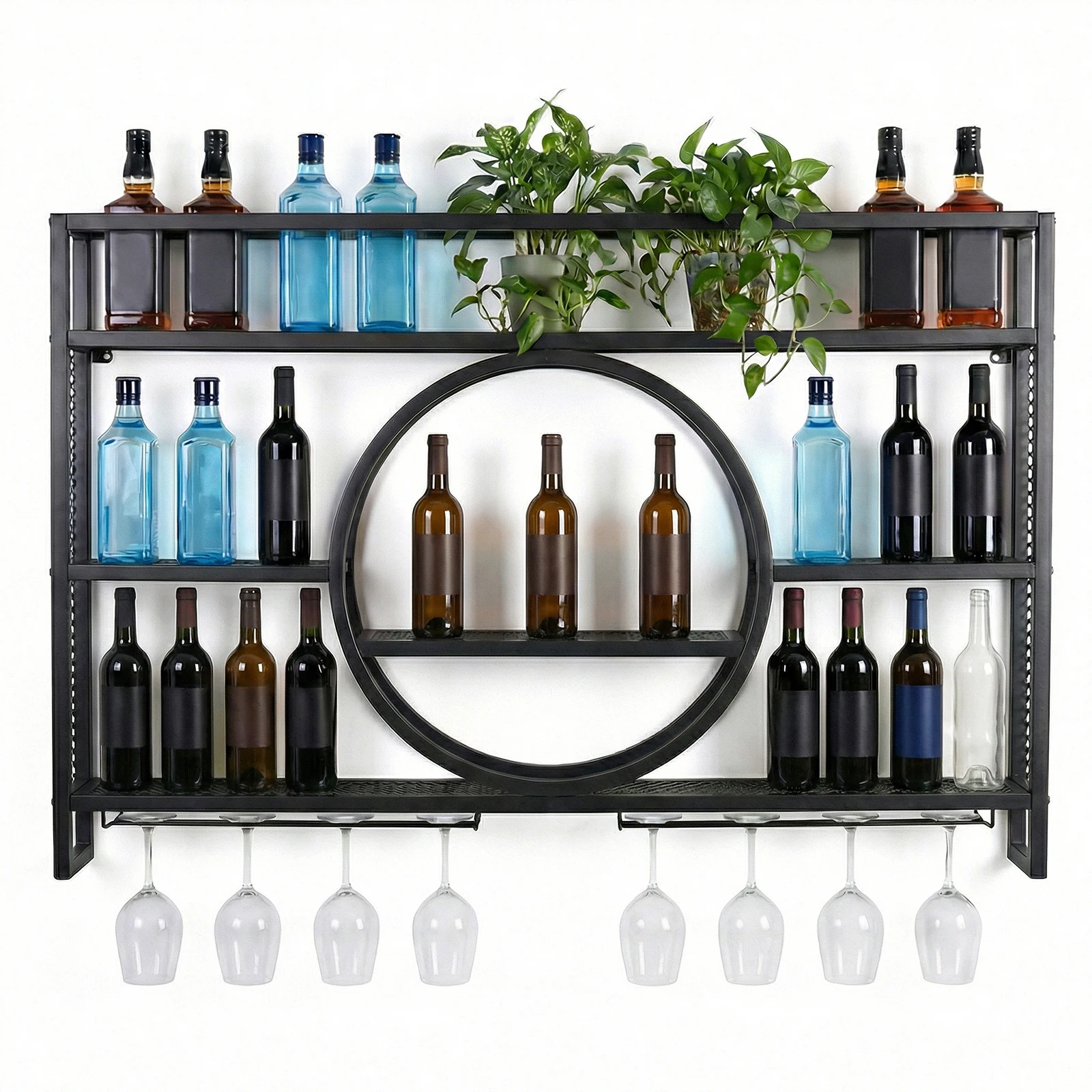 3.Sturdy and Reliable Construction: Built with a thickened iron frame and reinforced welding, the large capacity modern liquor shelves offer powerful load-bearing capacity. Reliably store multiple wine bottles, glasses, and bar tools on this sturdy shelf.