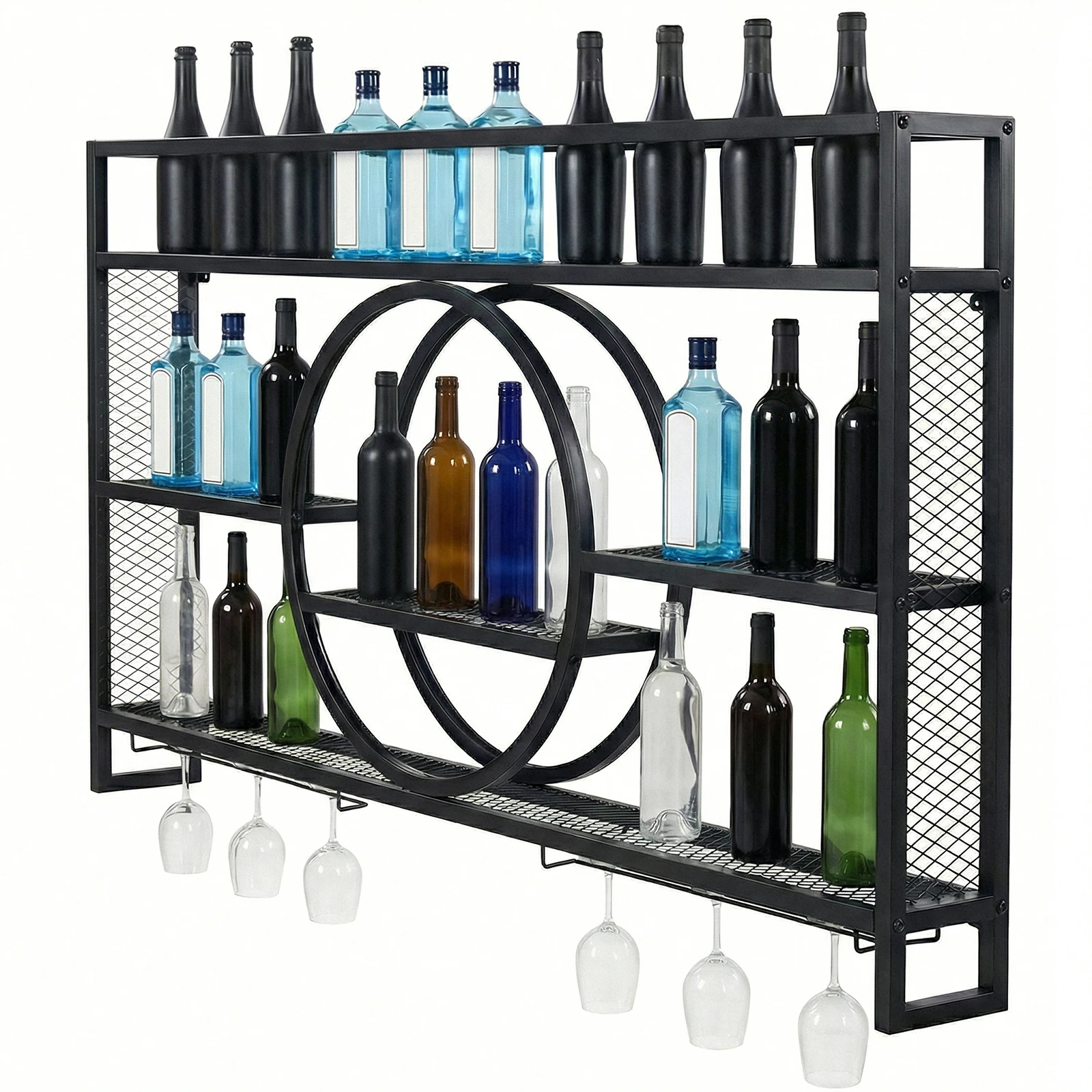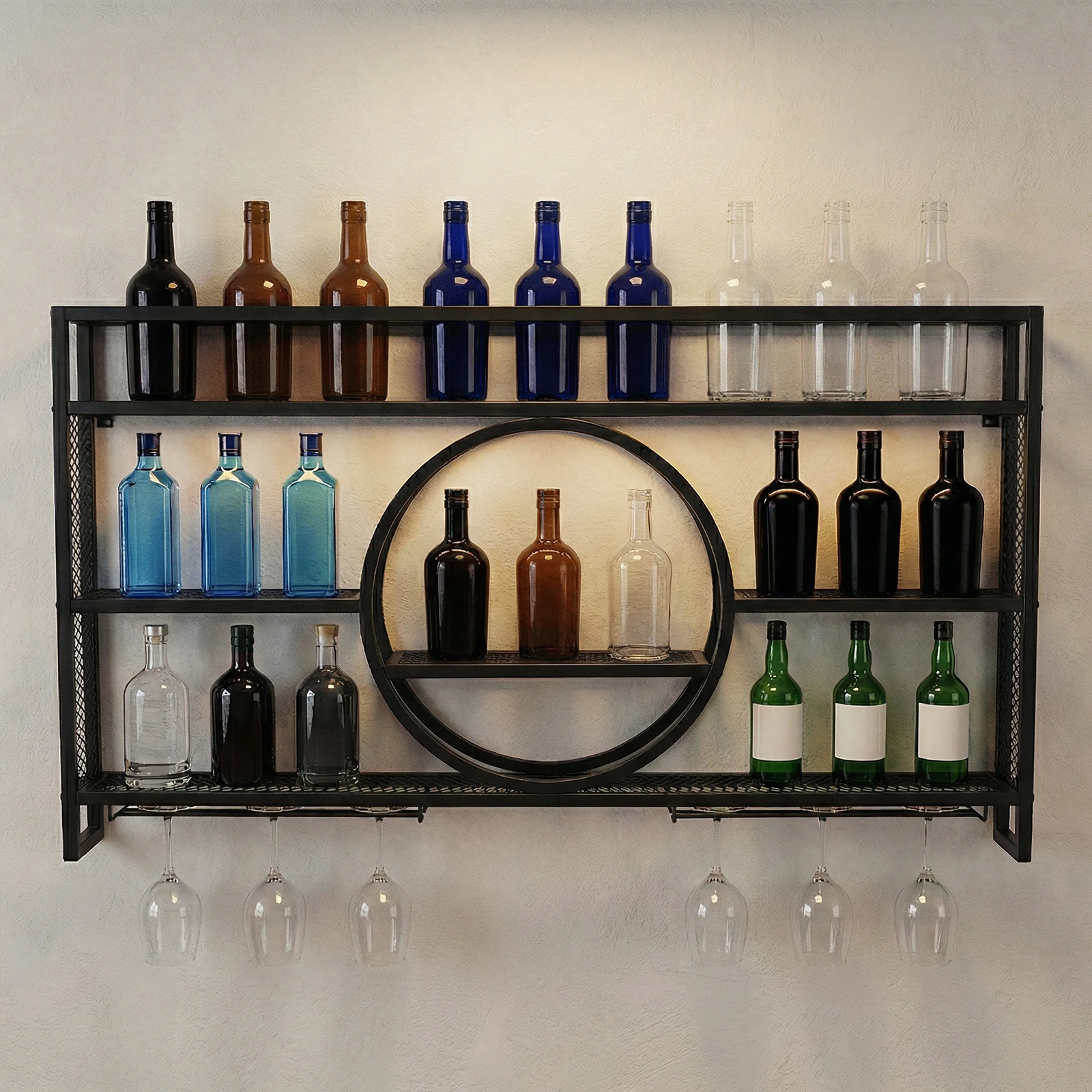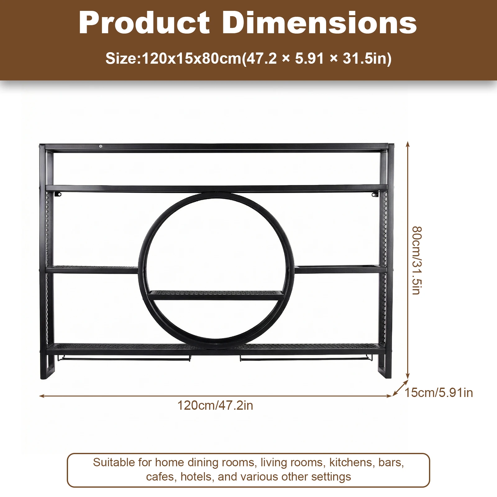 5.Fits Various Settings: Excellent for home kitchens, dining rooms, living rooms, bars, coffee shops, and hotels, the hanging industrial liquor shelf functions as both a practical storage rack and a decorative accent to personalize any space.